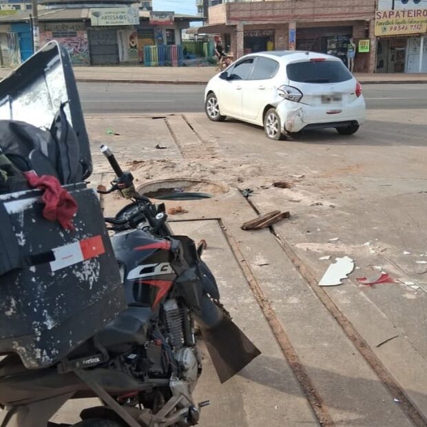 Um acidente de trânsito envolvendo uma motocicleta e um carro deixou um homem ferido na manhã desta quarta-feira (18/3), na QNN 17, em Ceilândia, no Distrito Federal. A colisão ocorreu em uma via urbana próxima a uma academia e mobilizou equipes do Corpo de Bombeiros Militar do DF (CBMDF).