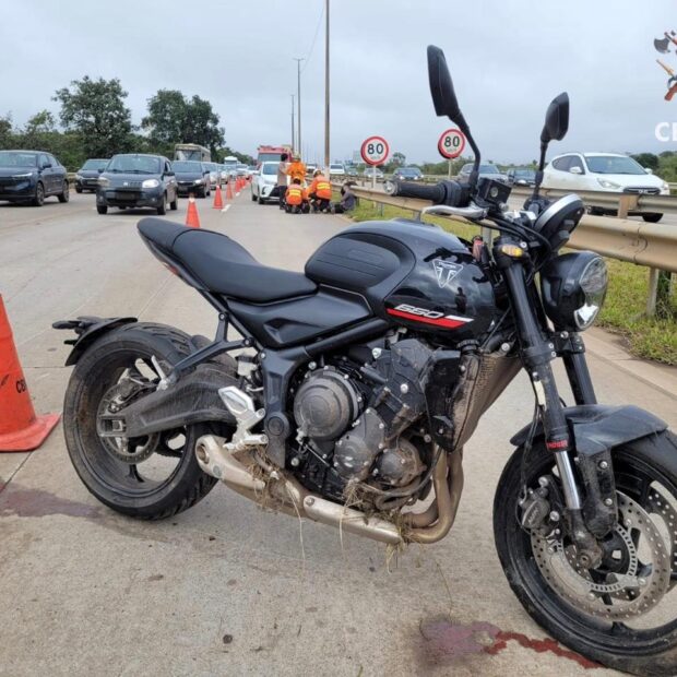 Ao chegar ao local, as equipes encontraram uma colisão envolvendo uma motocicleta Triumph, de cor preta, e um Toyota Yaris, de cor branca. O motociclista recebeu atendimento pré-hospitalar com aplicação do protocolo de trauma. Ele estava consciente e orientado, apresentava escoriações pelo corpo e foi encaminhado a um hospital de referência para avaliação médica.