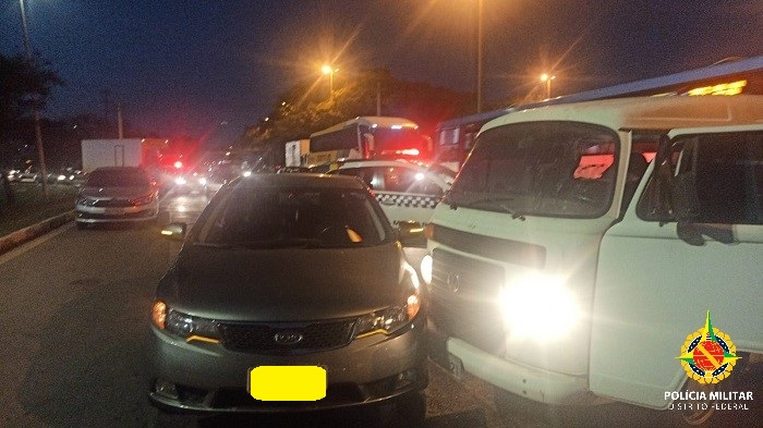 Com a decisão do motorista, se iniciou o acompanhamento da viatura a Kombi. O homem, em sua tentativa de escapar, subiu com o carro no canteiro central da EPIA, porém perdeu o controle do veículo e colidiu com outro que carro que passava.