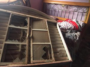 Dada a força da colisão, o veículo arrancou uma janela da casa, a qual caiu sobre uma mulher de 60 anos e de uma criança de 9 anos de idade, causando-lhes lesões superficiais.