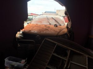 Dada a força da colisão, o veículo arrancou uma janela da casa, a qual caiu sobre uma mulher de 60 anos e de uma criança de 9 anos de idade, causando-lhes lesões superficiais.