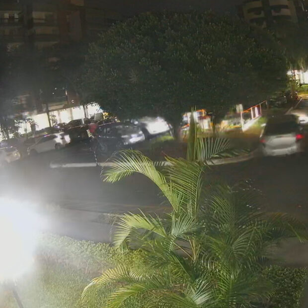 O sinistro foi registrado pelas câmeras de segurança de prédios vizinhos.