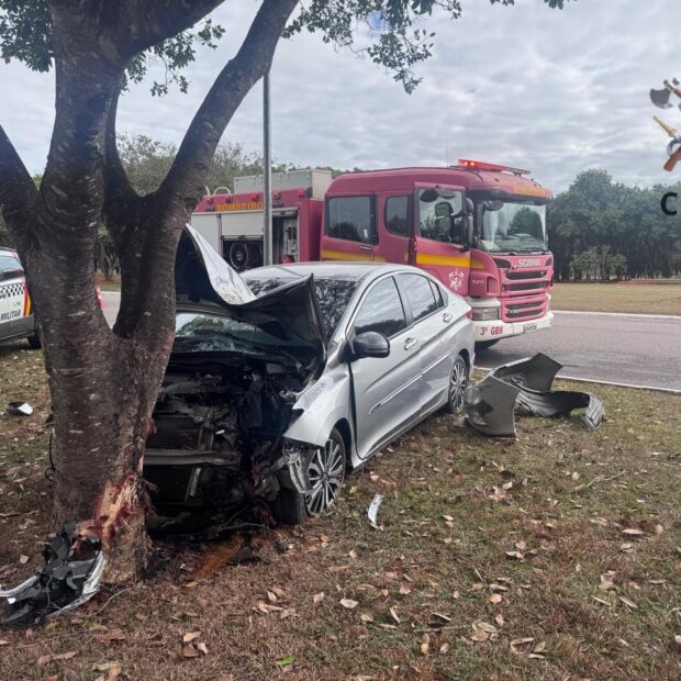 No local, os militares encontraram um Honda City prata com danos frontais. O condutor, identificado como A.B.F., estava consciente e orientado, mas reclamava de dores no peito. Ele recebeu os primeiros socorros no local e foi transportado ao Hospital HOME.