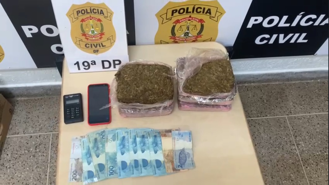O autuado foi preso na região do Riacho Fundo no momento em que se preparava para fazer uma entrega de 5kg de maconha, porção avaliada em R$ 75 mil. Com ele também foi encontrada a quantia de R$ 952,00 em espécie.