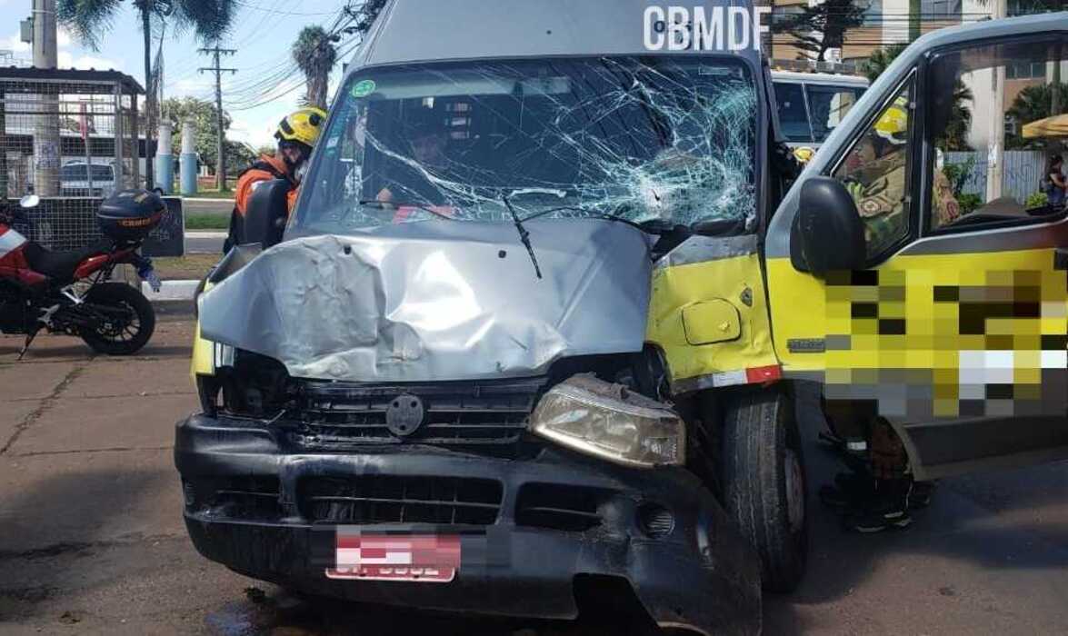 Um ônibus e uma van escolar se envolveram em um acidente no início da tarde desta sexta-feira (05), em Taguantinga.