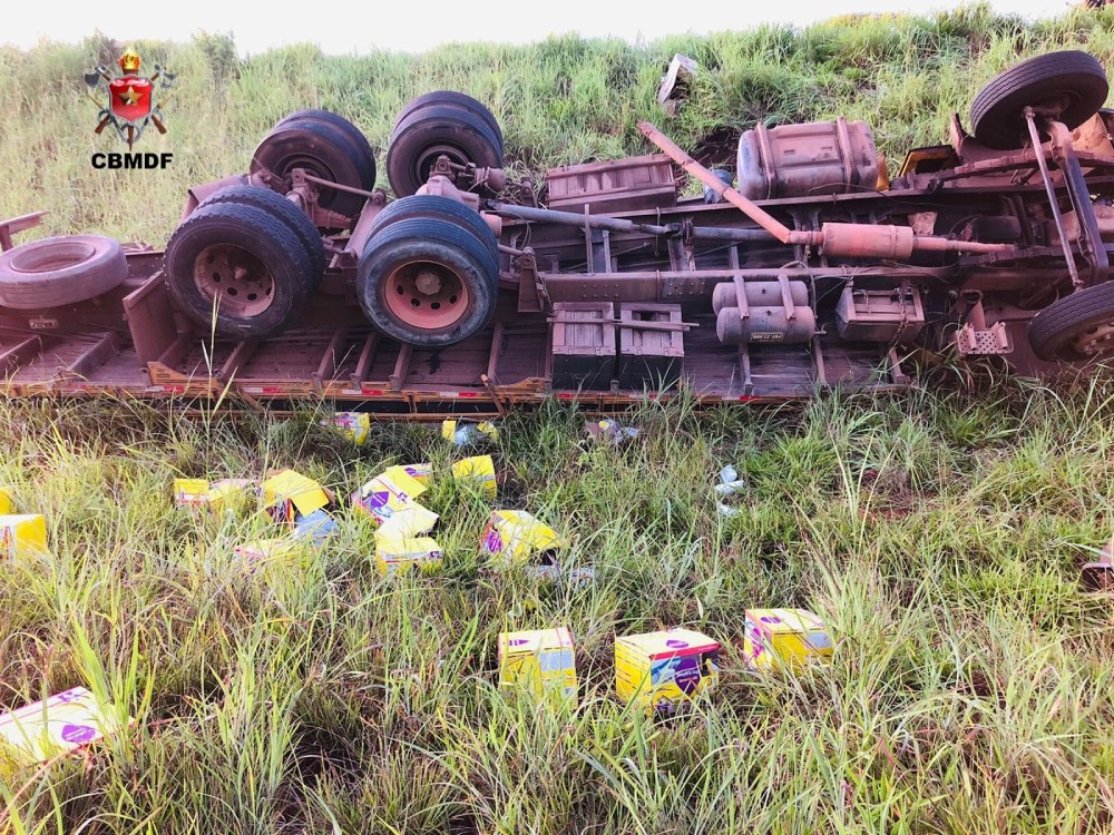 Um caminhão de carga capotou no início da manhã desta segunda (25/4) na BR-020, no trecho próximo ao acesso à Embrapa em Planaltina (DF). O condutor perdeu o controle da direção e capotou às margens da rodovia.