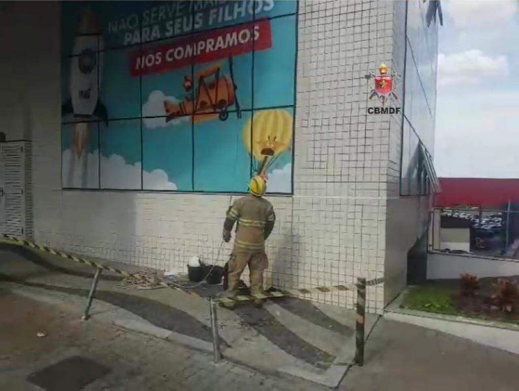 Uma mulher caiu da fachada de um prédio na tarde desta quarta-feira (28). O acidente aconteceu em um Shopping, localizado na Avenida Castanheira, ao lado do Atacadão Dia a Dia, em Águas Claras. A vítima apresentava fratura exposta na perna direita e fratura fechada na perna esquerda, porém, estava consciente, orientada e estável.
