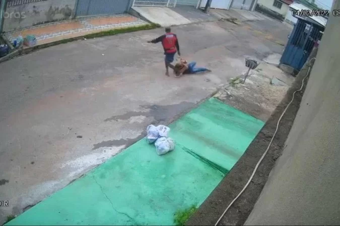 Um assaltante arrastou a vítima ao tentar arrancar a bolsa dela, na quadra 601 de Samambaia Norte. O caso aconteceu na última sexta-feira (4) e câmeras registraram a ação.