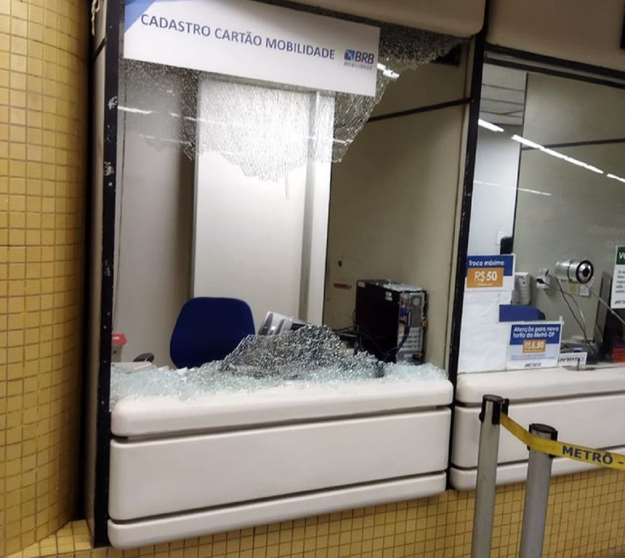 Na manhã desta sexta-feira (10), uma idosa foi presa após quebrar o vidro de uma bilheteria do Metrô-DF, na estação Praça do Relógio, em Taguatinga.