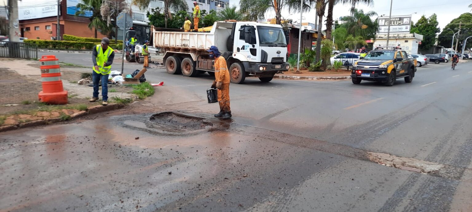 A operação tapa-buraco foi um pedido feito pelo administrador da cidade, Renato Andrade, ao governador Ibaneis Rocha, que determinou à Secretaria de Governo (Segov) a coordenação da força-tarefa. Trata-se de uma ação executada com frequência em Taguatinga – segundo o administrador, mensalmente são gastas 400 toneladas de massa asfáltica na região.