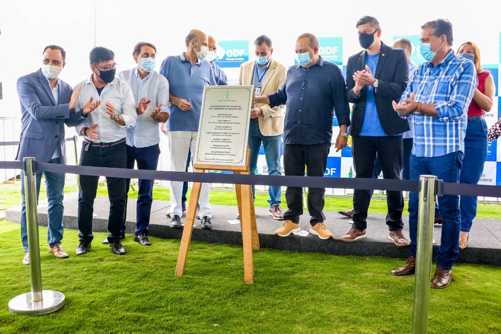 Na manhã desta sexta-feira (7), o governador do Distrito Federal, Ibaneis Rocha (MDB), participou do evento de entrega do Hospital de Campanha do Gama, localizado no estádio Bezerrão. A administradora do Gama, Joseane Feitosa, e o secretário de saúde, Osnei Okumoto, também estavam presentes na cerimônia.