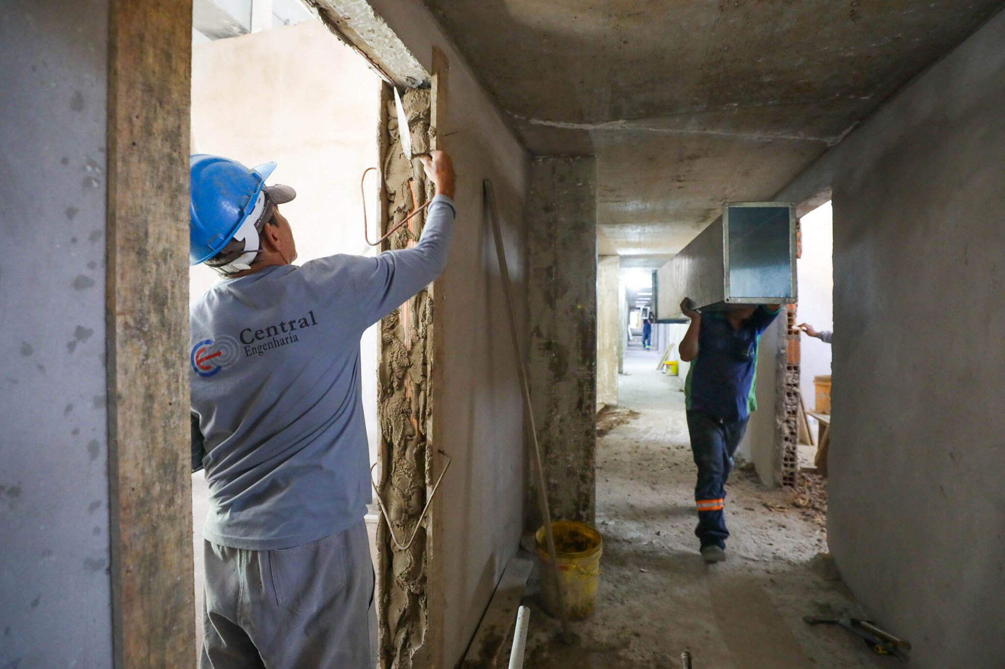 “As partes hidráulica e elétrica estão com 70% dos serviços realizados, os dutos de ar-condicionado já estão posicionados, além de todas as salas da unidade estarem concretadas”, aponta a engenheira civil. Um novo reservatório de água com capacidade para 18 mil litros também já está pronto e será o responsável por abastecer o equipamento público.
