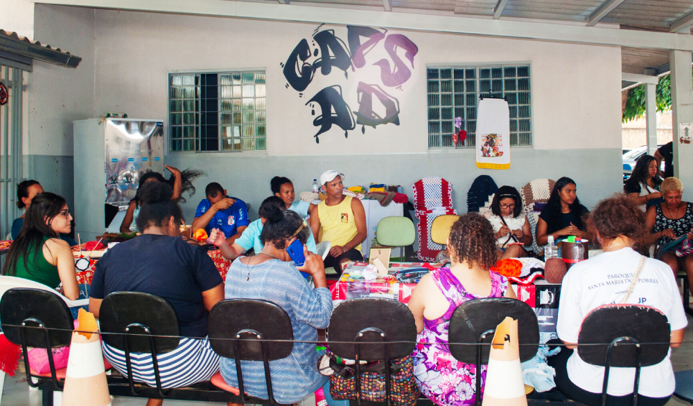 Uma vez por semana, o espaço do Centro de Atenção Psicossocial Álcool e Drogas (Caps AD) do Itapoã vira um grande ateliê. Entre linhas e agulhas, profissionais de saúde e pacientes colocam as habilidades manuais em prática na confecção de cachecóis, mandalas, fuxicos e trabalhos com crochê. A sessão, que deveria durar duas horas, muitas vezes se estende até o final da tarde. “O horário de início é às 14h, mas, à medida que os pacientes vão chegando, já iniciamos os trabalhos e não percebemos o tempo passar”, detalha Vaniuza Alves de Oliveira, técnica em enfermagem e uma das organizadoras do projeto.