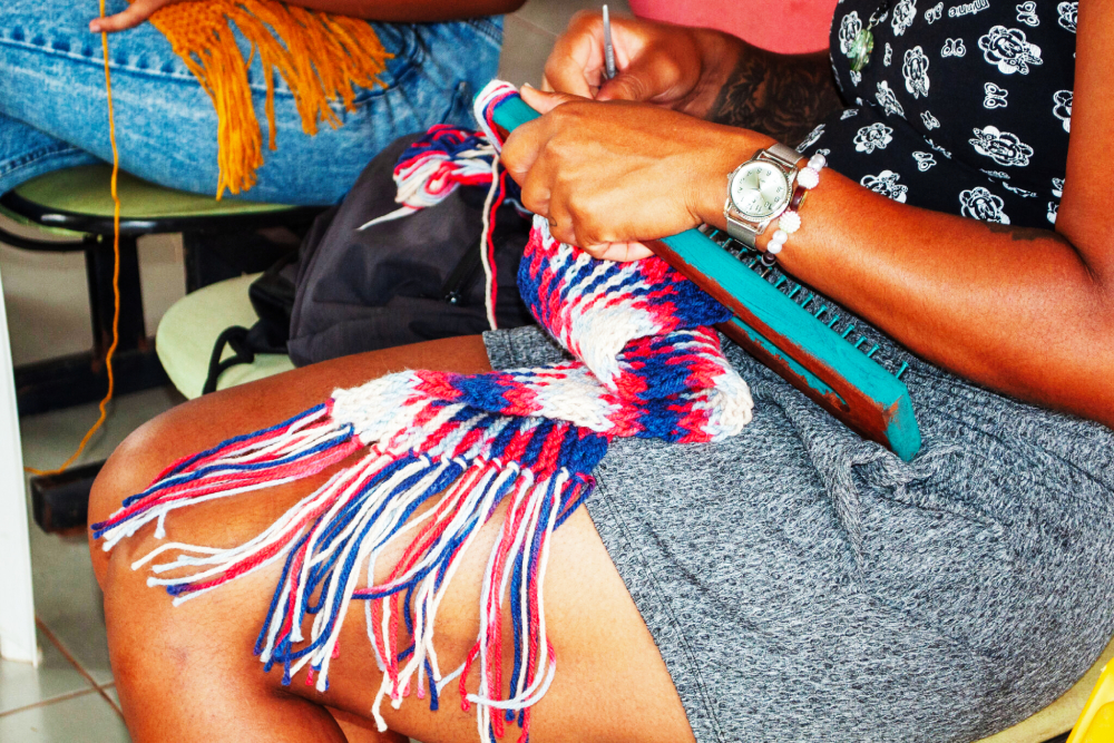 Patrícia Araújo Alves, de 22 anos, concorda com Marcos. Durante a adolescência, ela desenvolveu depressão e passou a fazer uso abusivo de drogas ilícitas. Por orientação da mãe, decidiu frequentar o Caps AD e relata que a assistência que recebeu foi o ponto principal para que pudesse mudar os rumos de sua vida. O cachecol foi o primeiro trabalho que fez, mas atualmente seu foco está no tricô com malha. “Minha mãe sempre foi artesã e eu nunca demonstrei interesse. Quando cheguei e entendi que isso poderia fazer a diferença no meu caminho, decidi que iria me dedicar ao máximo”, explica a estudante. Patrícia pretende comercializar os produtos e conciliar a produção às aulas de pedagogia na Universidade de Brasília (UnB).