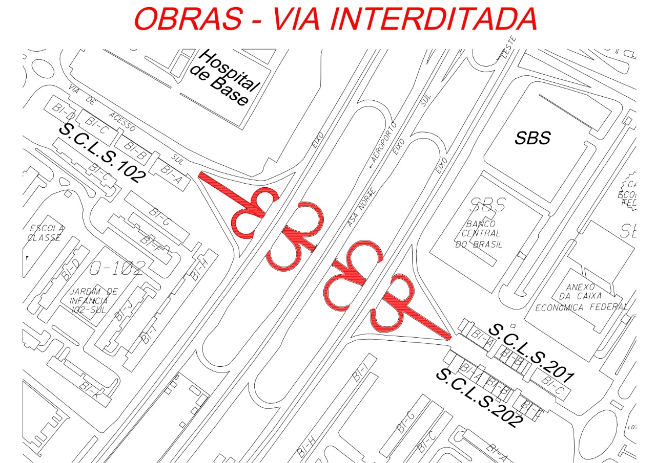 Usuários que desejarem acessar a quadra SCLS 201/202 deverão utilizar a tesourinha do Setor Bancário Sul (SBS) e da SCLS 203/204.