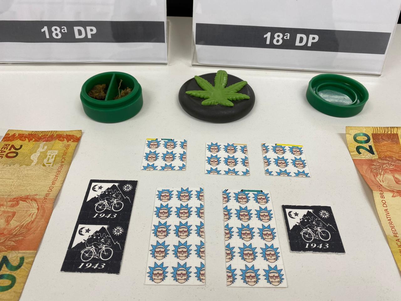 A partir daí, os policiais se prepararam para interceptar os dois suspeitos. Eles foram encontrados e abordados. Os agentes, então, perceberam que seriam vendidos 500 selos de LSD para a mulher.