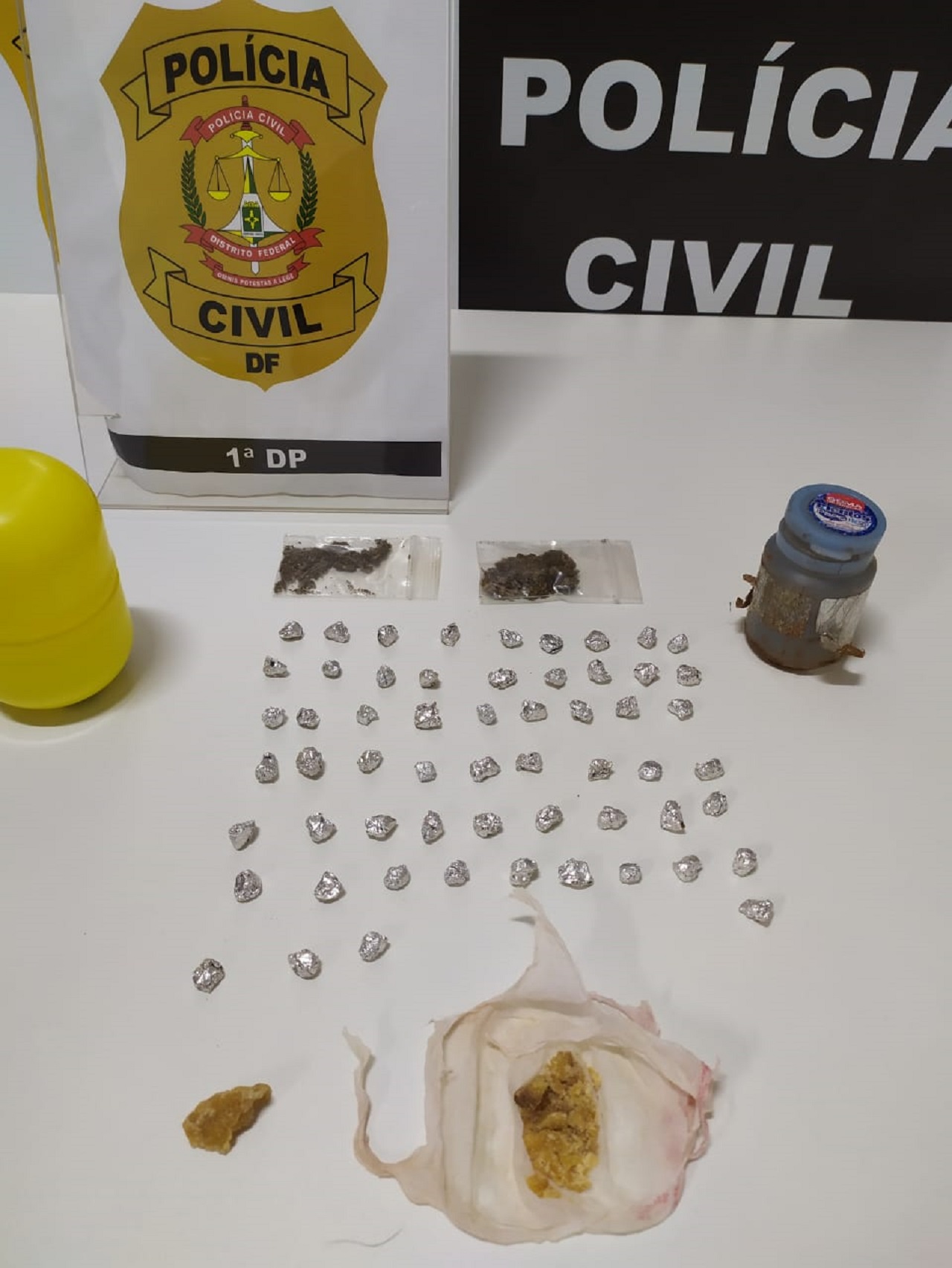 Diante da situação, foram efetuadas buscas no barraco da suspeita, local em que foram encontradas mais 59 porções da droga, embaladas e prontas para a entrega.