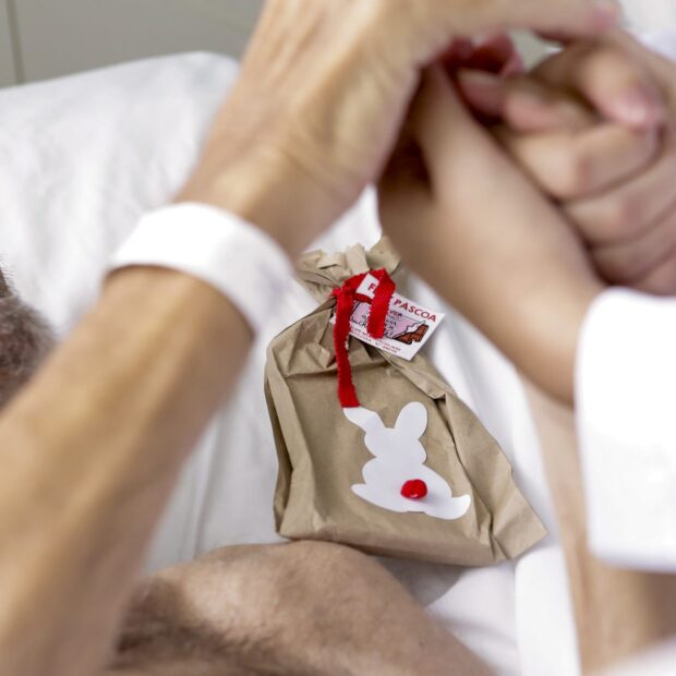 Para os internados com algum tipo de restrição alimentar ou que fazem uso de algum dispositivo, a equipe se revezou para confeccionar coelhinhos de EVA com uma mensagem sobre a Páscoa, praticando assim a inclusão de todos os pacientes na ação.