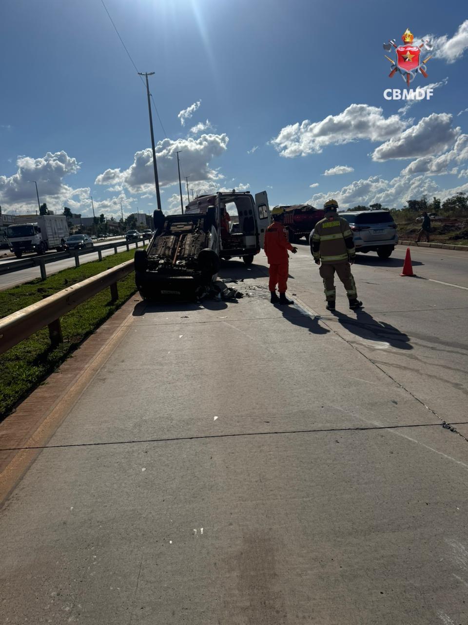 Brasília Fiorino capota após colisão com caminhão na Estrutural; passageiro fica ferido 22/10/2025 17h16