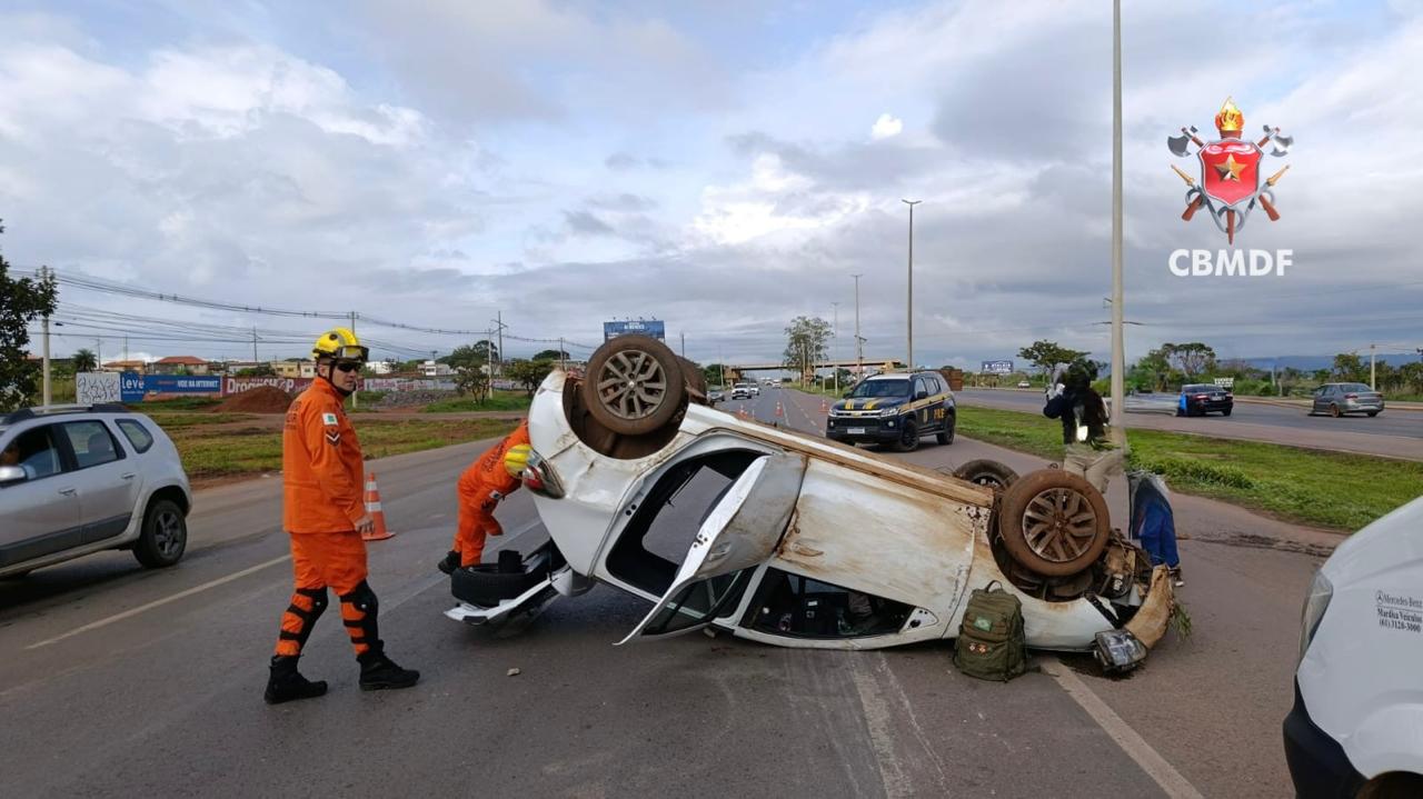 Brasília Motorista fica ferido após carro sair da pista e capotar em viaduto na DF-003 12/03/2026 7h05