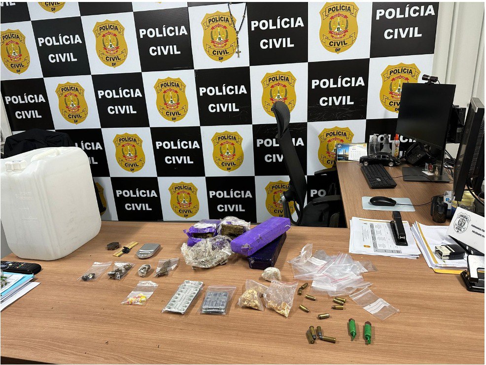 Apesar da tentativa de fuga do investigado, os policiais civis conseguiram localizar uma grande quantidade de maconha e seus derivados, crack, ecstasy e rohypnol (também conhecido como Boa Noite Cinderela), além de munições de diversos calibres na residência.