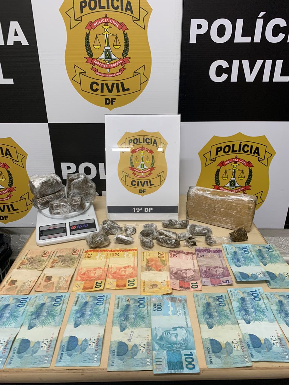 Foram apreendidas diversas porções de maconha que totalizaram cerca de 1,5 KG, além de balança de precisão e R$ 1.175,00 em espécie. O autuado já possuía várias passagens criminais por crimes como homicídio, tentativa de homicídio e porte ilegal de arma de fogo. O preso foi encaminhado para a carceragem da PCDF.