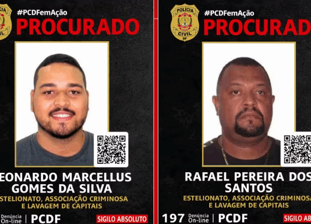 A PCDF informou que Rafael Pereira dos Santos e Leonardo Marcellus Gomes da Silva continuam foragidos. Informações sobre o paradeiro dos suspeitos podem ser repassadas ao número 197, da Polícia Civil do Distrito Federal.