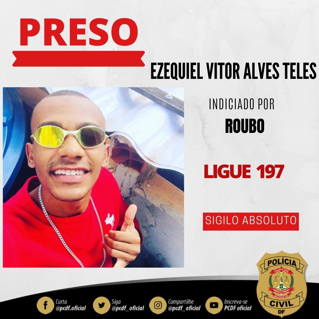 Por meio da 29ª Delegacia de Polícia (DP), a Polícia Civil do Distrito Federal (PCDF) divulga a imagem de um homem de 21 anos acusado de roubar motoristas por aplicativos. Ele foi preso na tarde da última quinta-feira (17) no Riacho Fundo. A imagem é compartilhada para que novas vítimas sejam identificadas.