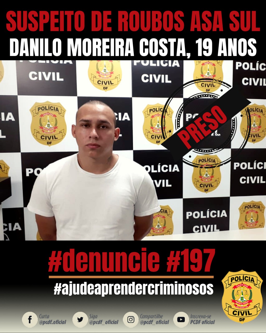Danilo está preso de forma preventiva. A PCDF pede à imprensa que divulgue a imagem dele para que as vítimas venham a denunciar mais casos.