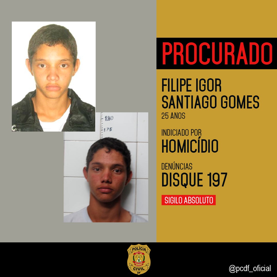 A 19ª Delegacia de Polícia (P Norte) divulgou, nesta terça-feira (1), nome e foto do suspeito de matar um jovem de 23 anos na chácara 16 do Sol Nascente, no dia 8 de novembro deste ano. A DP pede que a imagem de Filipe Santiago Gomes, 25 anos, seja divulgada para que as autoridades cheguem até ele o mais rápido possível. Filipe está foragido.