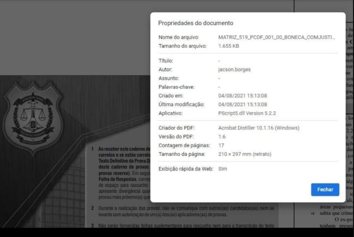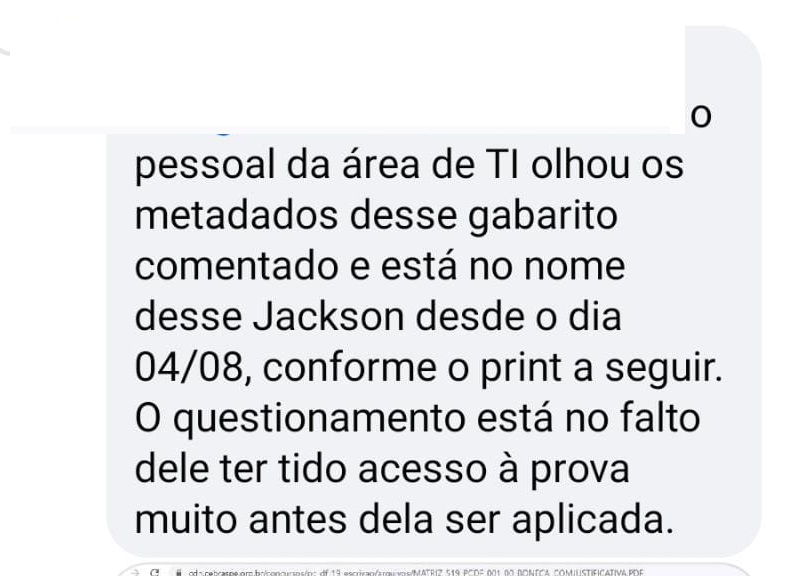 As imagens da prova circulam na internet. As redes sociais trazem também uma informação de que o gabarito teria vazado desde o último dia 4 — as provas foram aplicadas nos dias 21 e 22.