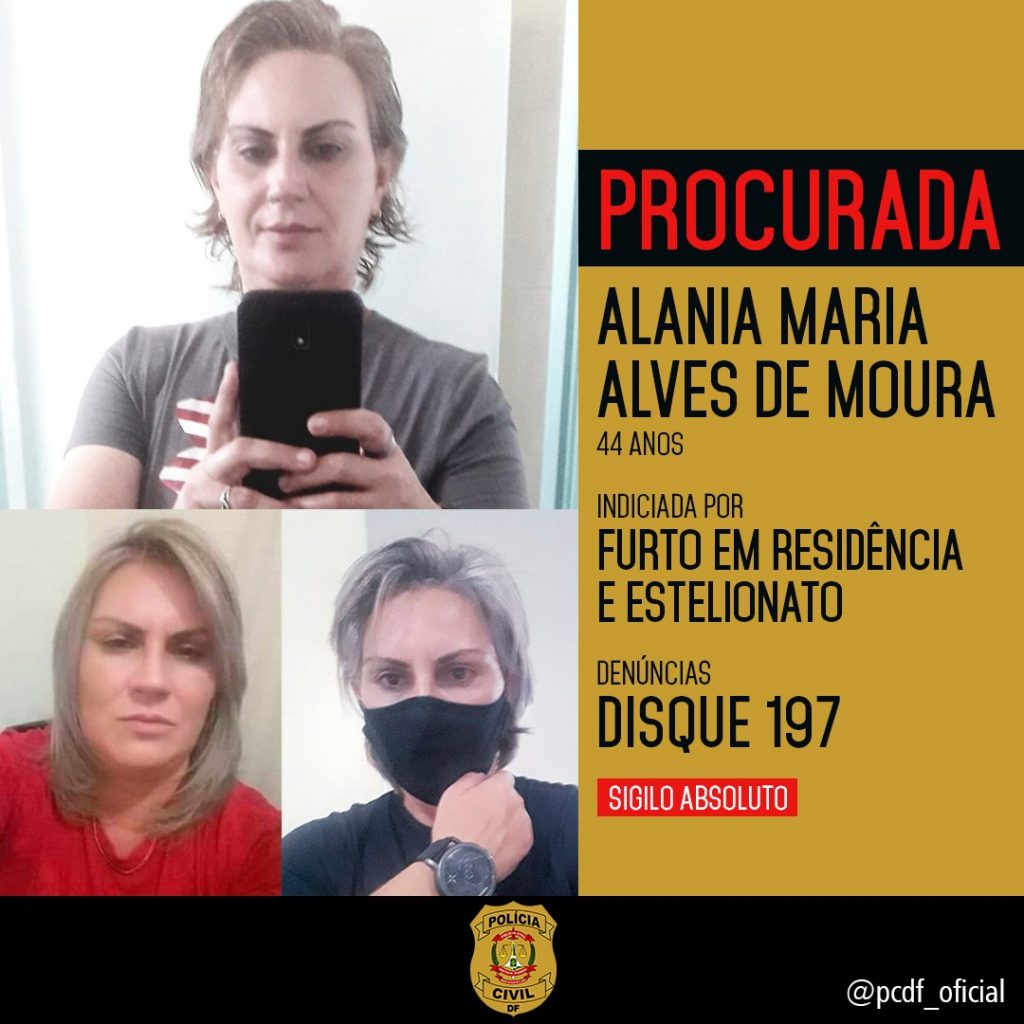 A Polícia Civil (PCDF) pede que seja divulgada a imagem de Alania para que mais vítimas da mulher possam denunciá-la: