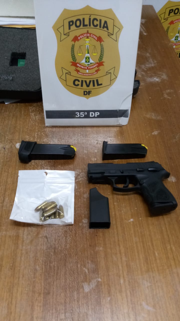 O material foi encaminhado ao Instituto de Criminalística para exame pericial. Os dois envolvidos, que já possuem passagens pela polícia por porte ilegal de arma de fogo e Lei Maria da Penha, foram recolhidos à carceragem da PCDF, onde permanecem à disposição da Justiça.