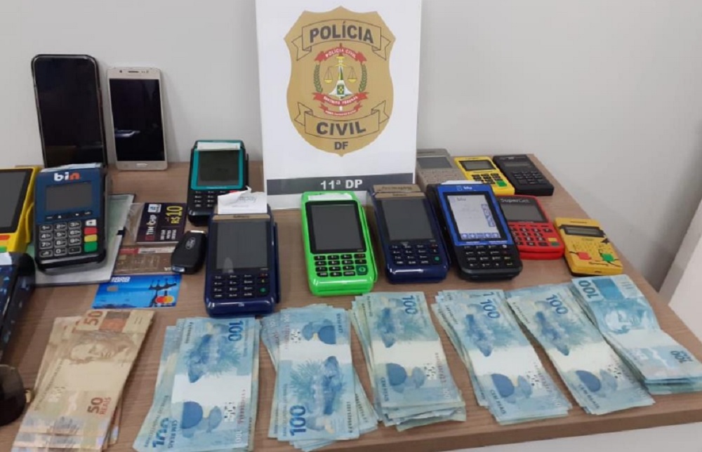 O homem foi abordado, em flagrante, com os cartões roubados em uma agência bancária no Núcleo Bandeirante. Em posse dele, foram encontrados R$6.900,00, 11 máquinas de cartão de crédito, cartões bancários de vítimas e um veículo. Todos os objetos foram apreendidos.