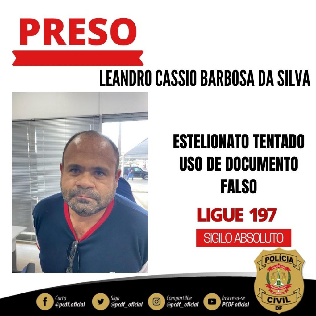 A Polícia Civil (PCDF) prendeu, na segunda-feira (19), um homem com vasta ficha criminal. Ele foi preso após fingir ser representante de uma pessoa jurídica em uma concessionária no Setor de Indústria e Abastecimento (SIA) para comprar um carro. Leandro Cassio Barbosa da Silva, 44 anos, usou documentos falsos para a aquisição.