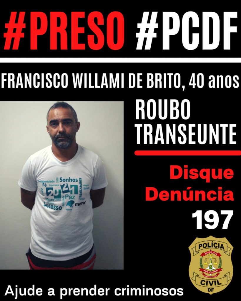 40 anos acusado de diversas ocorrências de roubo praticados contra mulheres, na região de Ceilândia/DF. O suspeito foi preso nessa terça-feira (9).