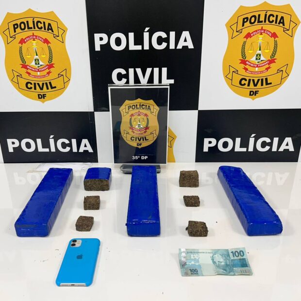A Polícia Civil do Distrito Federal (PCDF), por meio da 35ª Delegacia de Polícia, em Sobradinho II, prendeu em flagrante, na tarde desta sexta-feira (6), um homem de 28 anos por tráfico de drogas e associação para o tráfico.
