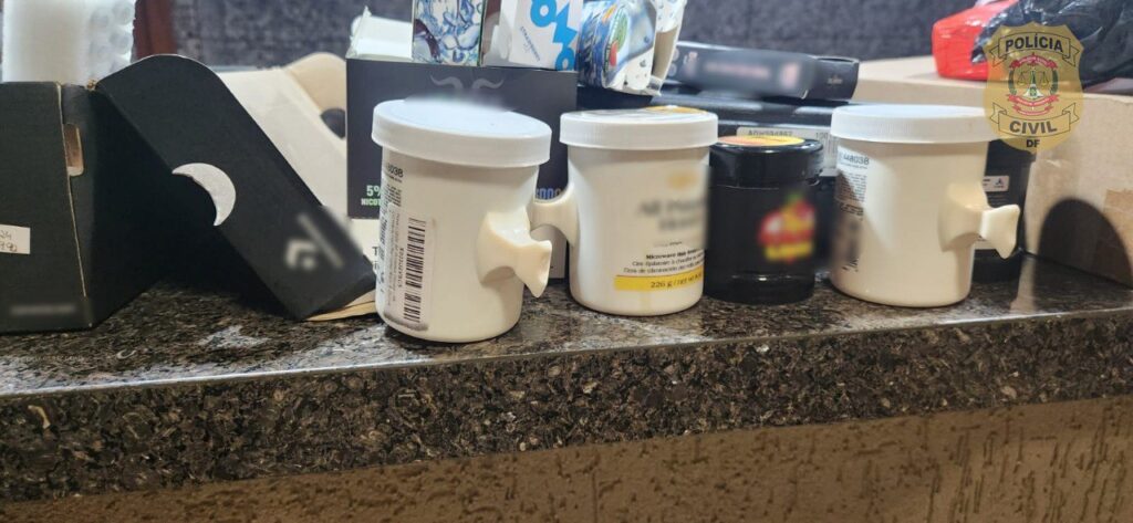 Parte dos insumos utilizados na produção dos cigarros eletrônicos com cannabis era importada da China e do Rio de Janeiro, personalizada com a logomarca da organização criminosa.