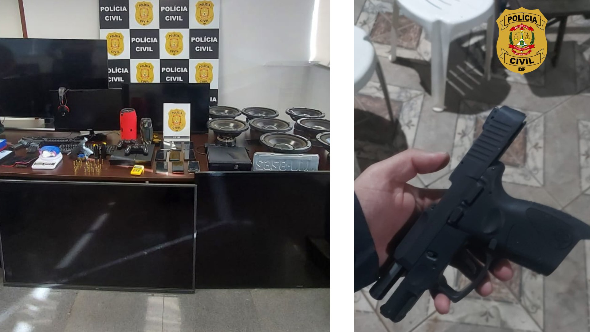 A Polícia Civil do Distrito Federal (PCDF) cumpriu dois mandados de prisão preventiva e nove mandados de busca e apreensão. Dois homens foram presos com mandado de prisão e um em flagrante, nesta quinta-feira (23).