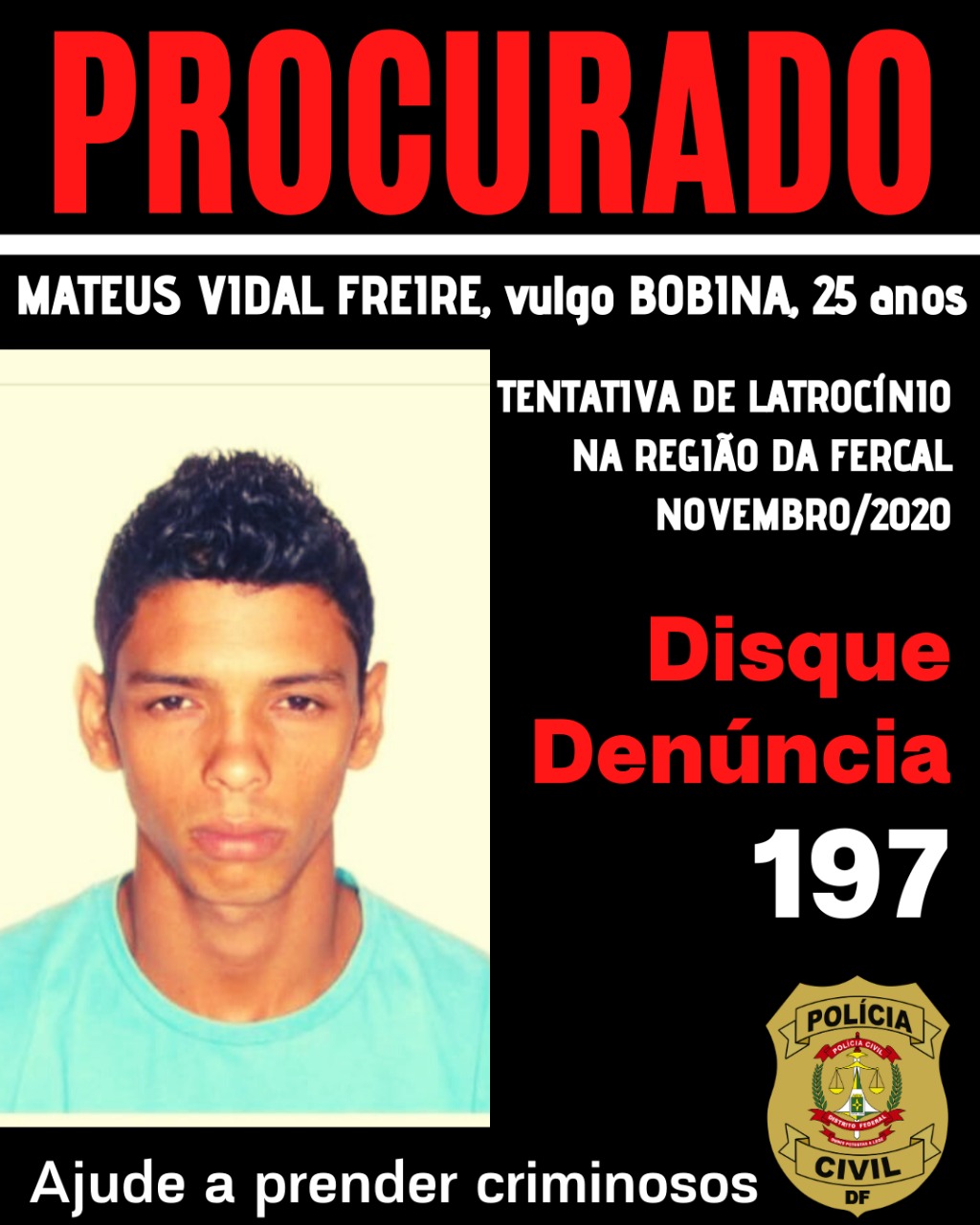 Mateus Vidal Freire, conhecido como Bobina, de 25 anos, é outro envolvido no crime e ainda é procurado.