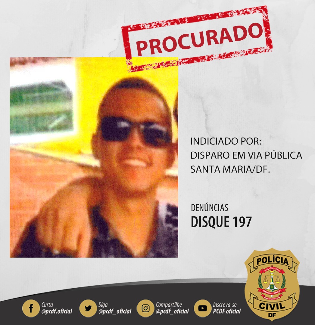 A Polícia Civil do Distrito Federal (PCDF) divulgou, nesta terça-feira (29), a imagem de um foragido indiciado pelo crime de porte e disparos de arma de fogo, em Santa Maria (DF).
