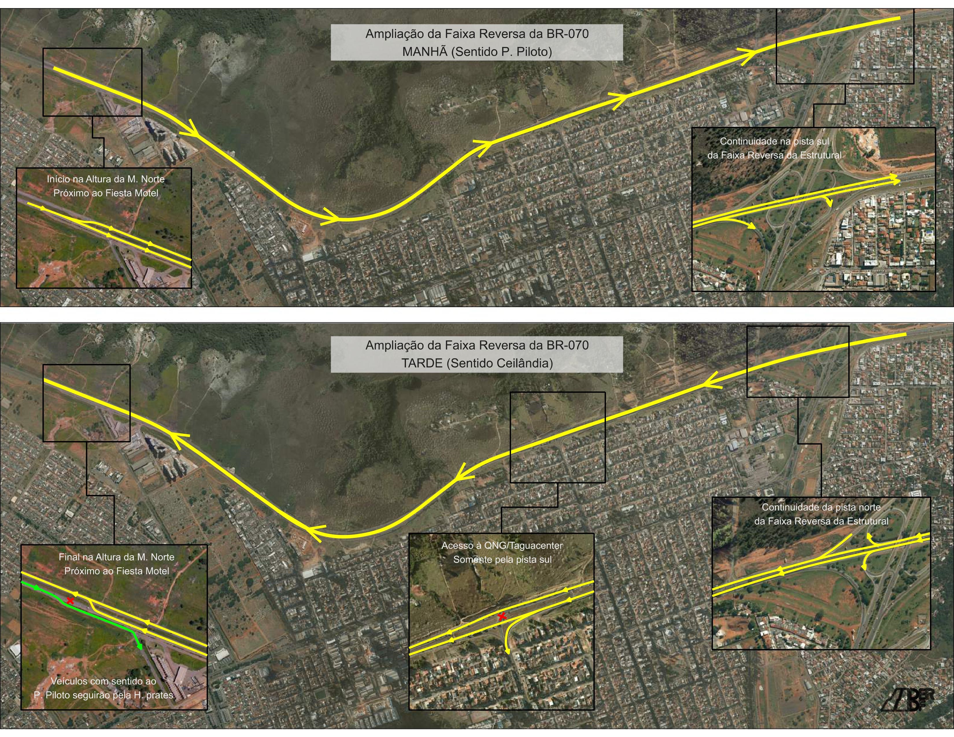Desde 2015 a operação na BR-070 foi instituída pelo DER, porém em um trecho de aproximadamente 1,8 mil metros que abrange do viaduto do Pistão Norte até o Mercado Norte, em Taguatinga. Na época, a medida foi tomada para permitir fluidez na Estrada Parque Ceilândia (EPCL/ DF-095), conhecida como Estrutural, que permanece pela manhã com a inversão do fluxo de veículos para o Plano Piloto, das 6h às 9h; e à tarde, com a pista sul trocando de direção para Taguatinga, entre as 17h30 e as 19h45.