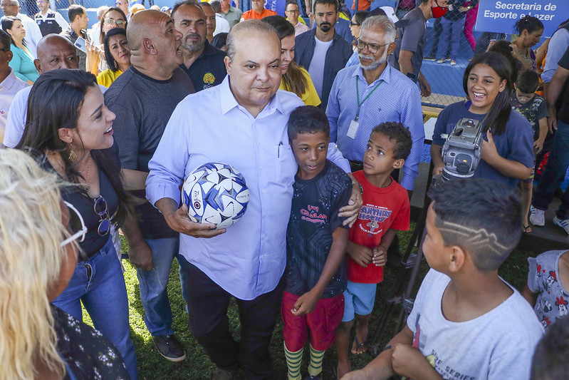 Na sequência, o governador Ibaneis inaugurou o campo de grama sintética no Buritis II. O evento contou com a participação de lideranças locais, de crianças e jovens que participaram do evento