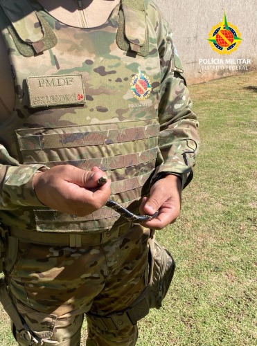 Policiais militares do Batalhão de Polícia Militar Ambiental (BPMA) foram acionados, na manhã desta quinta-feira (25), para resgatar uma serpente encontrada no jardim de uma residência no Setor Habitacional Tororó, região do Jardim Botânico. O chamado foi feito por moradores, preocupados com a presença do animal em área urbana.