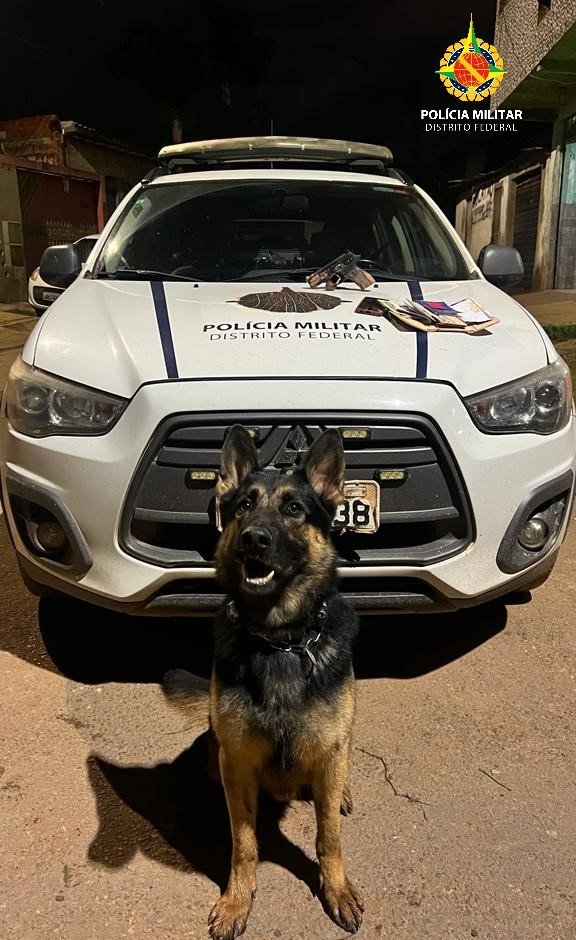 O criminoso estava com a arma em punho apontada na direção dos policiais. Em ato heroico, o cão policial imobilizou o jovem com uma mordida no braço.