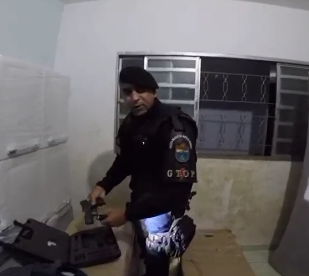Os agentes encontraram uma pistola Taurus G2C, calibre 9mm, contendo 12 munições, guardada em uma maleta no quarto do casal. Ambos foram conduzidos à delegacia para as devidas providências legais.