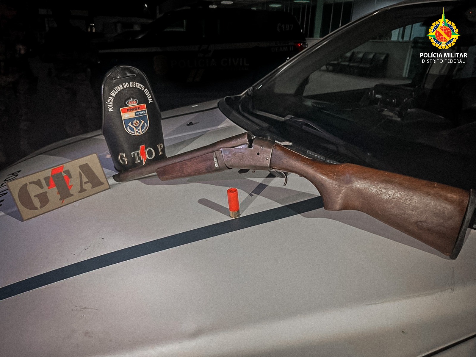 Após buscas realizadas no local, a equipe policial encontrou uma arma de fogo calibre 12 e um cartucho de munição intacto. O homem foi levado à 15ª Delegacia de Polícia para os procedimentos cabíveis.