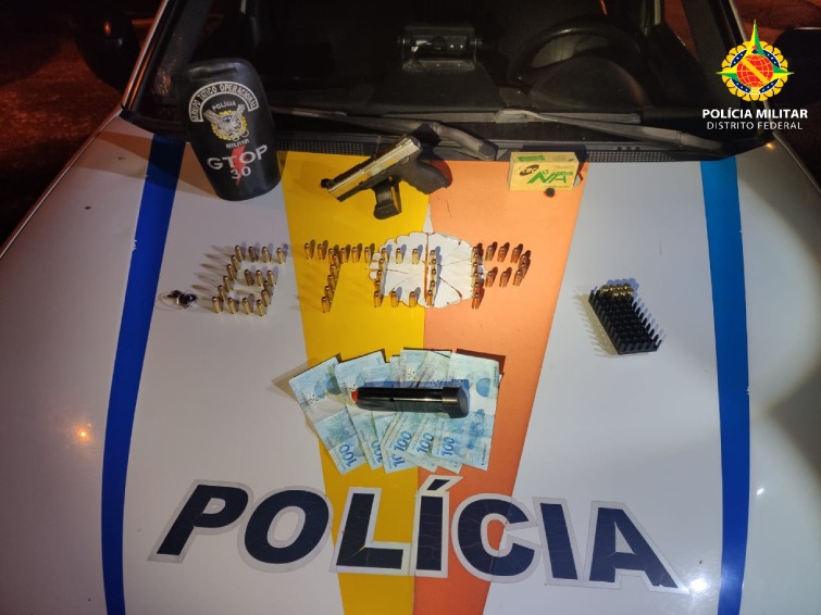 Um homem foi preso por porte ilegal de arma de fogo, na QNL 22, por volta das 20h30, deste sábado (3). Ele foi abordado e após uma varredura na área, os policiais encontraram uma pistola .40 com 63 munições.