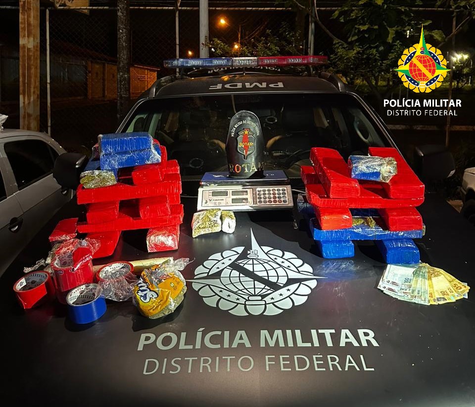 O detido confessou a existência de mais drogas em sua residência, localizada na QC 01. Na busca autorizada pelos familiares, os policiais encontraram 22 tabletes de maconha, uma balança de precisão, R$ 3.165,00 em espécie e cinco aparelhos celulares. O indivíduo foi autuado em flagrante por tráfico de drogas.