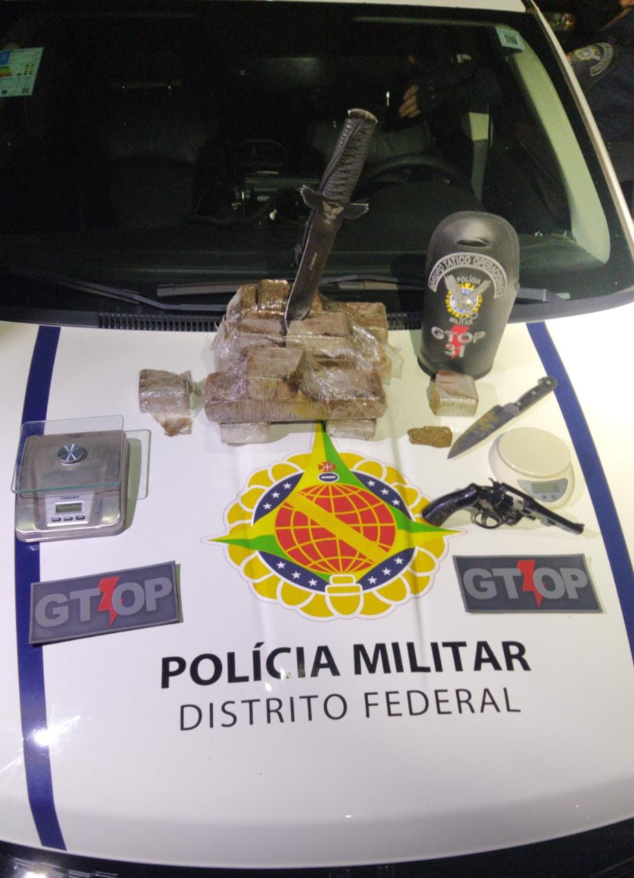 Na primeira, na QR 615 de Samambaia, um VW Gol de cor branca com dois indivíduos a bordo estaria praticando tráfico de drogas na região. Eles foram abordados, tiveram os documentos solicitados e disseram que os itens estavam em casa. Chegando à residência, a mãe de um deles permitiu a entrada dos militares. Lá, foram encontrados 5 kg de maconha e um revólver calibre 32. O caso foi registrado na 26ª Delegacia de Polícia (Samambaia Norte).